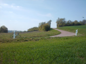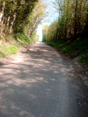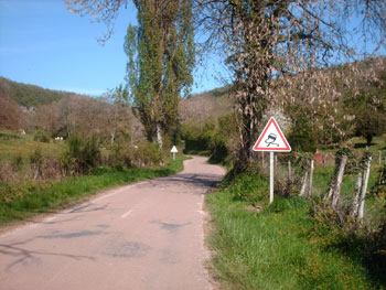 Pour ceux qui trouvent que ça ne grimpe pas beaucoup… et bien je vous propose de bifurquer à droite après Vauchignon afin de vous « défouler » sur 1470 m d’une pente qui ira crescendo de 7,5 à 10% ! Vous déboucherez au milieu des champs et emprunterez un lacet salvateur – 380 m à 7% – puis vous terminerez les 855 derniers mètres sur une pente moyenne à 2,5% où il y a souvent un petit vent de face. Arrivée à Bel-Air à 561 m.