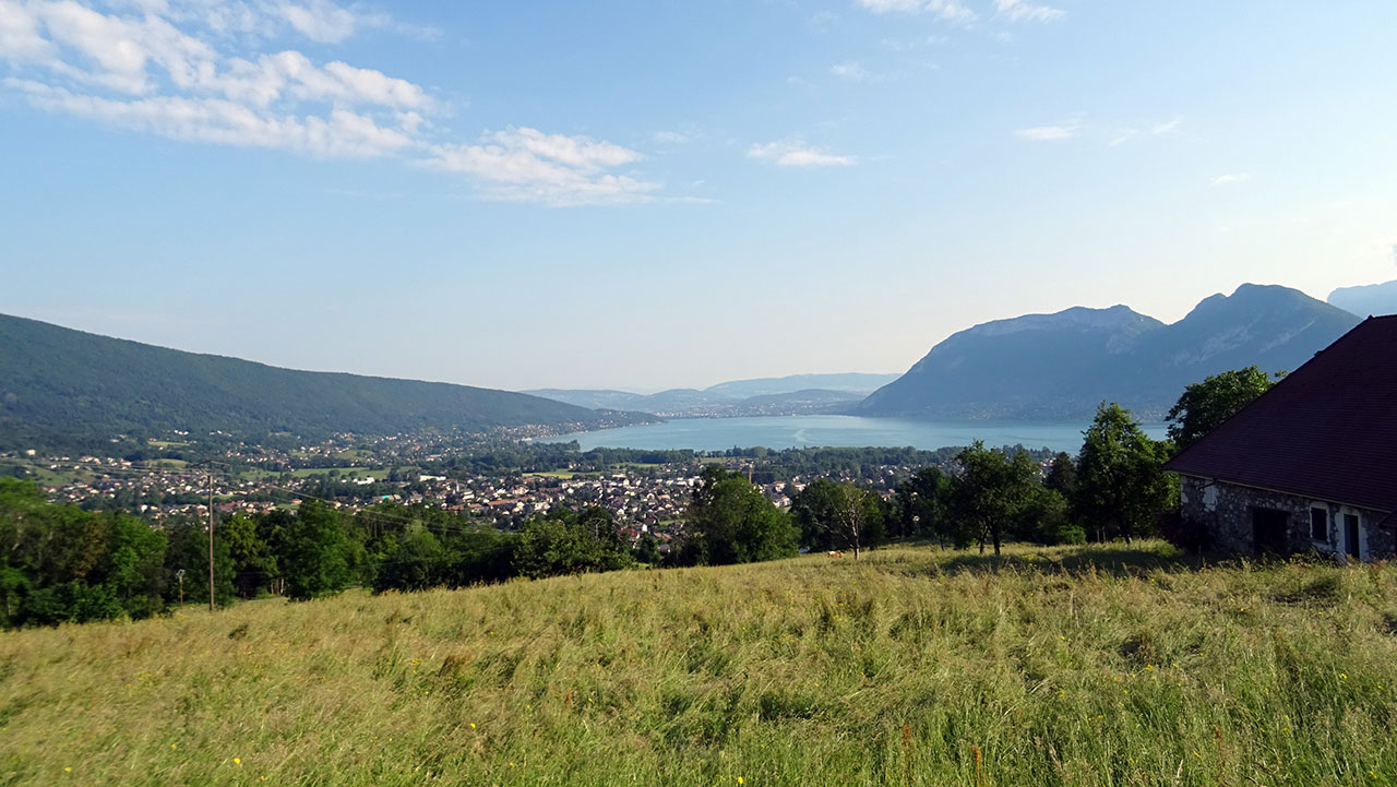 Au hameau du Puget, après 6 km depuis St-Jorioz, je franchis un premier point culminant situé à 795 m d’altitude. J’enchaîne avec une… descente. Longue de 1350 m à 7%, via le hameau du Cruet, elle me dépose à une intersection avec la D10.