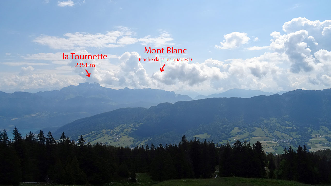 Le 11e et dernier virage lance les 800 derniers mètres à grimper jusqu’au sommet de la Montée du Semnoz. Ils sont assez faciles avec une pente à 4%, une douceur qui permet de bien finir ! Le panorama est sublime dans ce final car il s’étale de la Tournette (Massif des Aravais), en passant par le Mont Blanc (aujourd’hui caché dans les nuages), au Massif des Bauges.