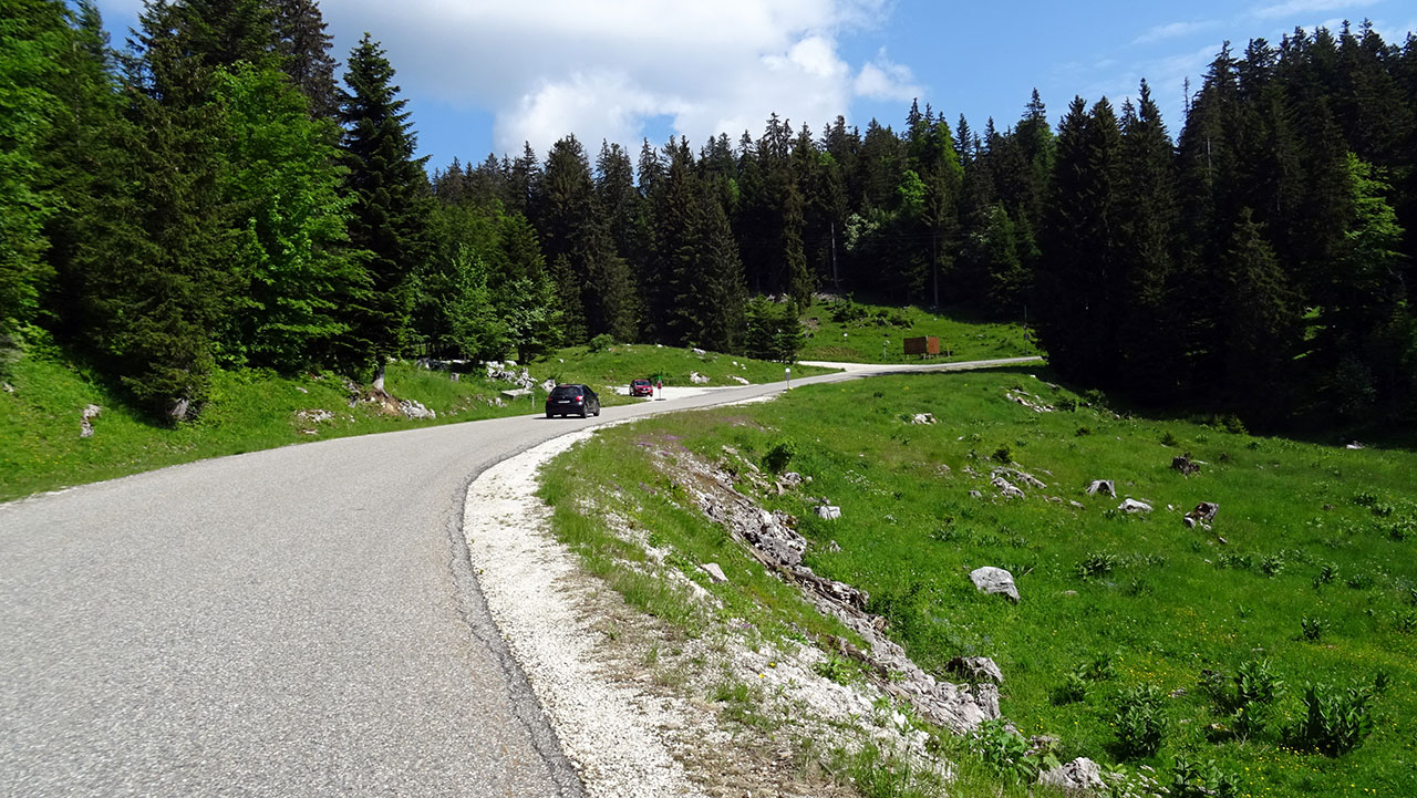 Je trouve un rythme qui me convient bien et grimpe patiemment les 5 lacets dont 3 sont relativement assez longs, ce qui accentue le fait de subir un peu plus la pente. J’apprécie l’instant car j’aime bien grimper des ascensions en dehors de la période touristique, il n’y a quasiment pas de circulation en ce milieu de semaine de début juin.