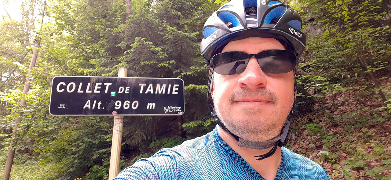 Lever vers 7h45. Cette fois-ci, je ne me prépare pas seul mais en compagnie de mon épouse Corinne. Nous allons réaliser ensemble la dernière sortie de la semaine. Elle ne sera pas trop dure pour moi car ce sera un aller-retour au Col de Tamié. Mais pour Corinne, même en vélo électrique, ce sera une première de réussir une ascension avec du D+. L’an dernier, on avait presque réussi à faire le Col de Vence (963 m) mais un mauvais dosage de la batterie avait fait faire demi-tour à Corinne à 3 km du sommet. À 8h30, on décolle pour réaliser ce petit défi.