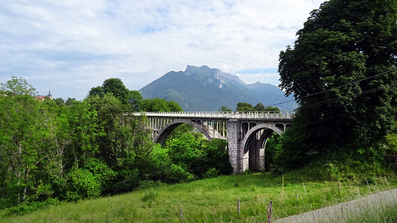 Corinne et moi faisons une petite pause pour admirer le Grand pont de Seythenex et faire un point sur la première partie qui vient de se terminer. Corinne se sent en pleine forme. Parfait, on a fait la partie la plus « dure », le reste devrait aller encore mieux.