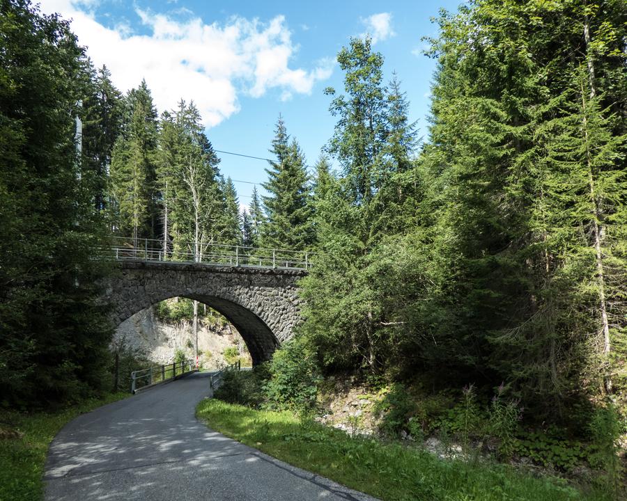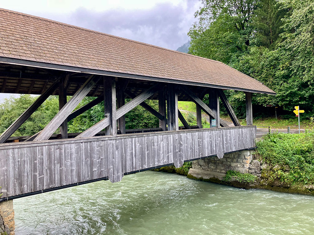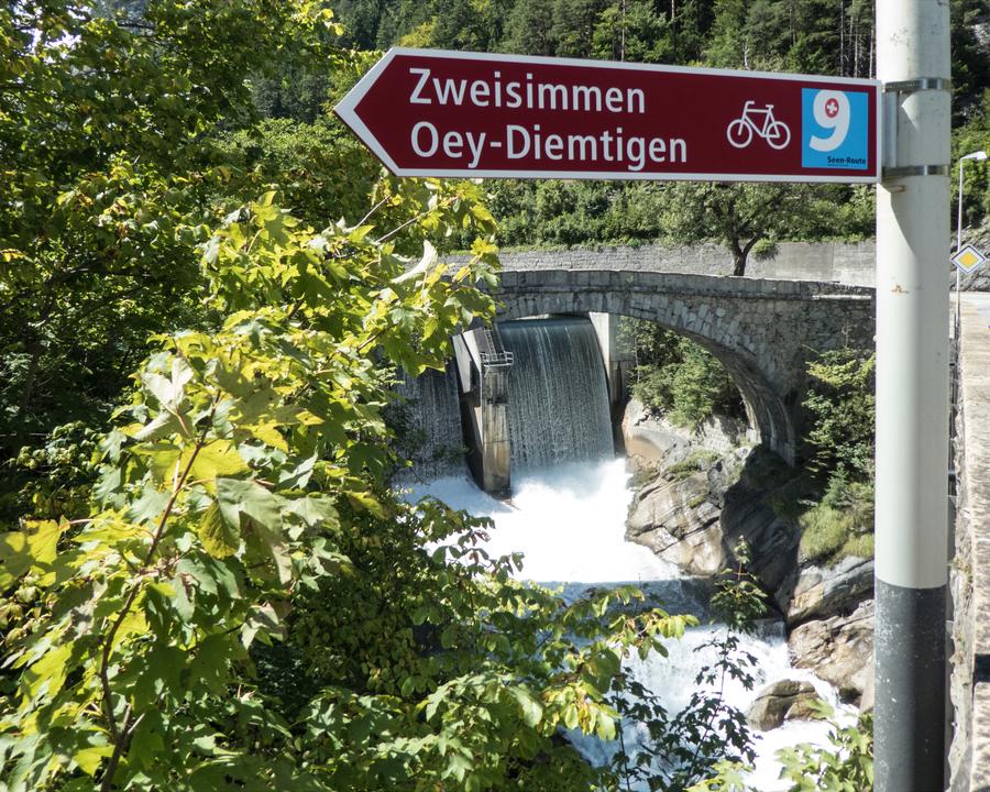 Nous restons sur la Route principale 11. Une courte descente nous guide vers un pont enjambant la Sarine qui sera le point de départ de l’ascension du Col des Mosses.