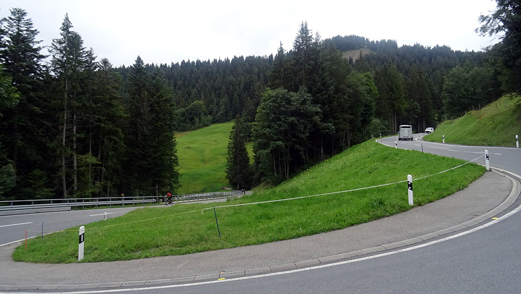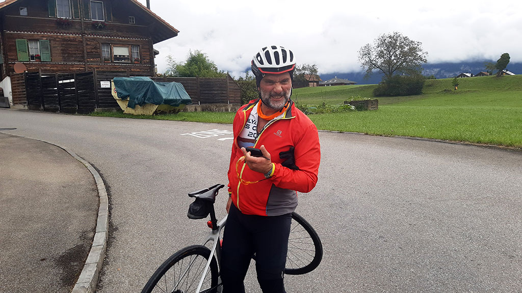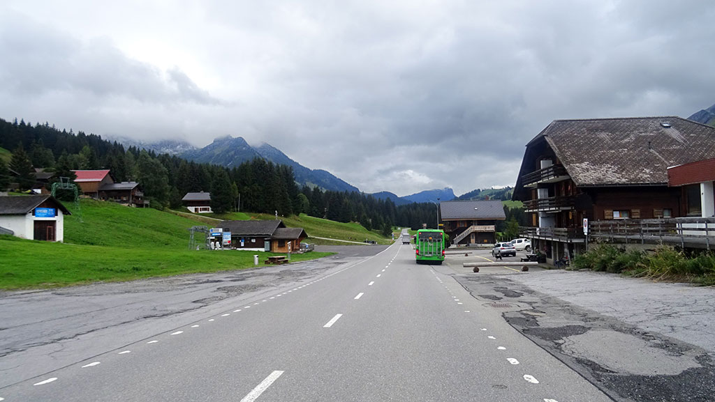 Lever 7h30, c’est presque la grasse matinée par rapport aux 4 premières étapes de ce voyage ! Petit-déjeuner tranquille en pensant à l’étape initiale qui était normalement prévue : 115 km / D+ 2250 m et 2 cols avec le Jaunpass – 1509 m – et celui des Mosses – 1445 m. Le Jaunpass devait être la grosse difficulté du jour avec une ascension pas très longue avec seulement 8,3 km mais très raide avec un joli 8% de moyenne.