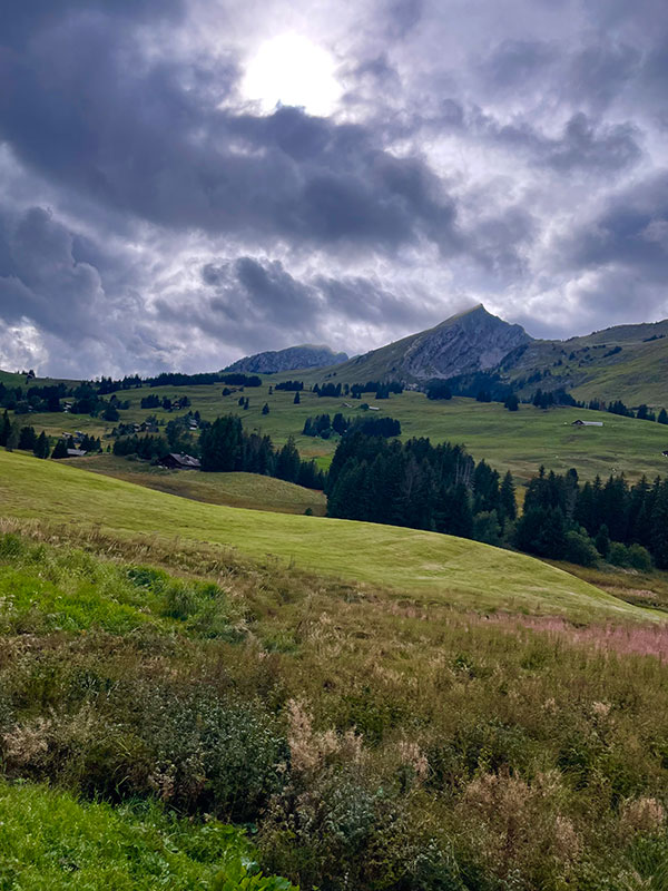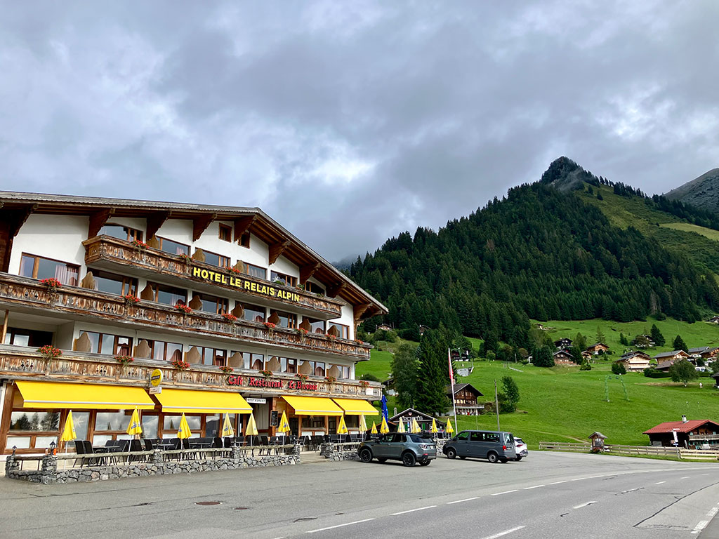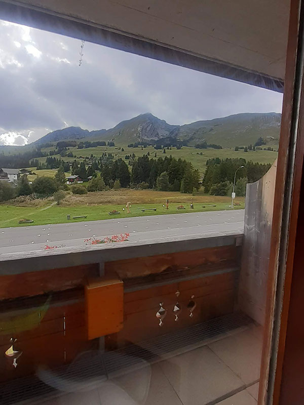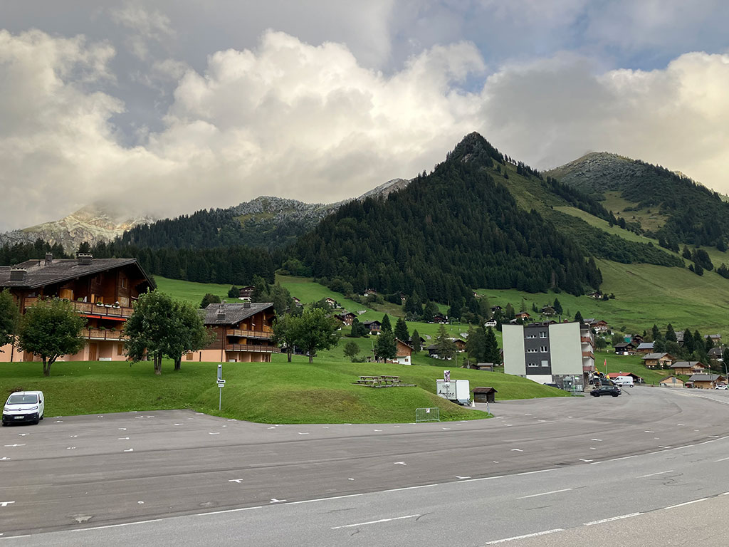 L’hôtel est à seulement deux pas du Col des Mosses. Il est assez chouette. Je remise le vélo dans un garage et file m’installer dans ma nouvelle chambre. Elle est spacieuse et j’ai droit à un grand balcon mais comme il fait très frais, je ne peux pas en profiter. Par contre, j’ai une belle vue sur les montagnes dont le Mont d’Or !