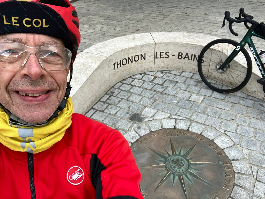 On repart en direction de Thonon-les-Bains. Il nous reste tout de même 27 km. Je pensais rouloter tranquillement pour profiter des derniers instants de ce voyage mais les gars appuient comme des forcenés comme s’ils voulaient en terminer le plus rapidement possible. C’est dur, je m’accroche comme je peux. À près de 28km/h de moyenne, on arrive en « peu de temps » à Thonon-les-Bains.